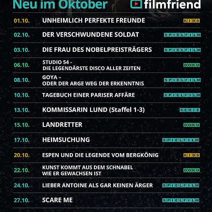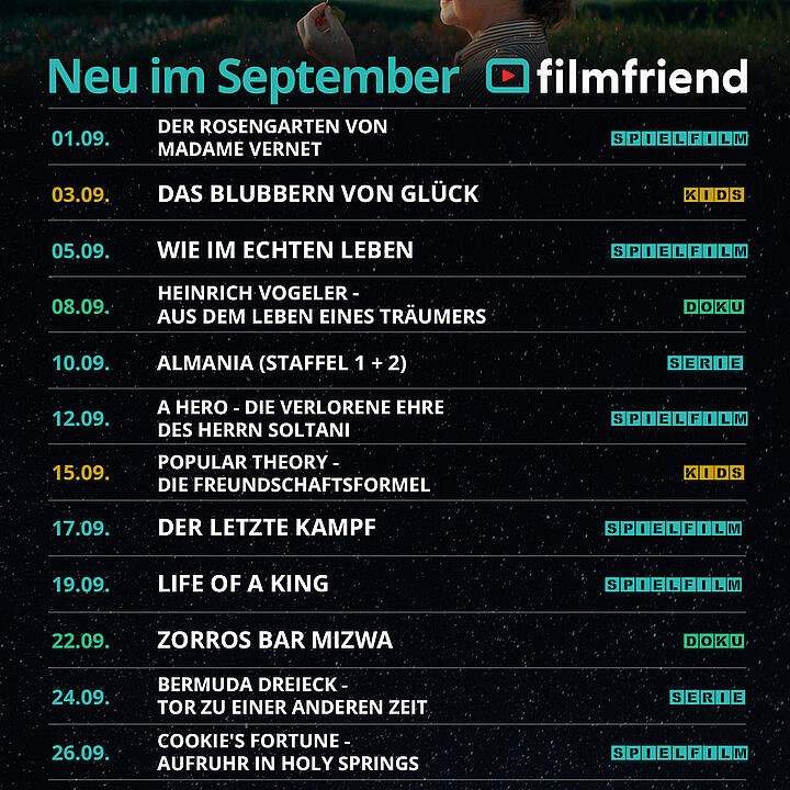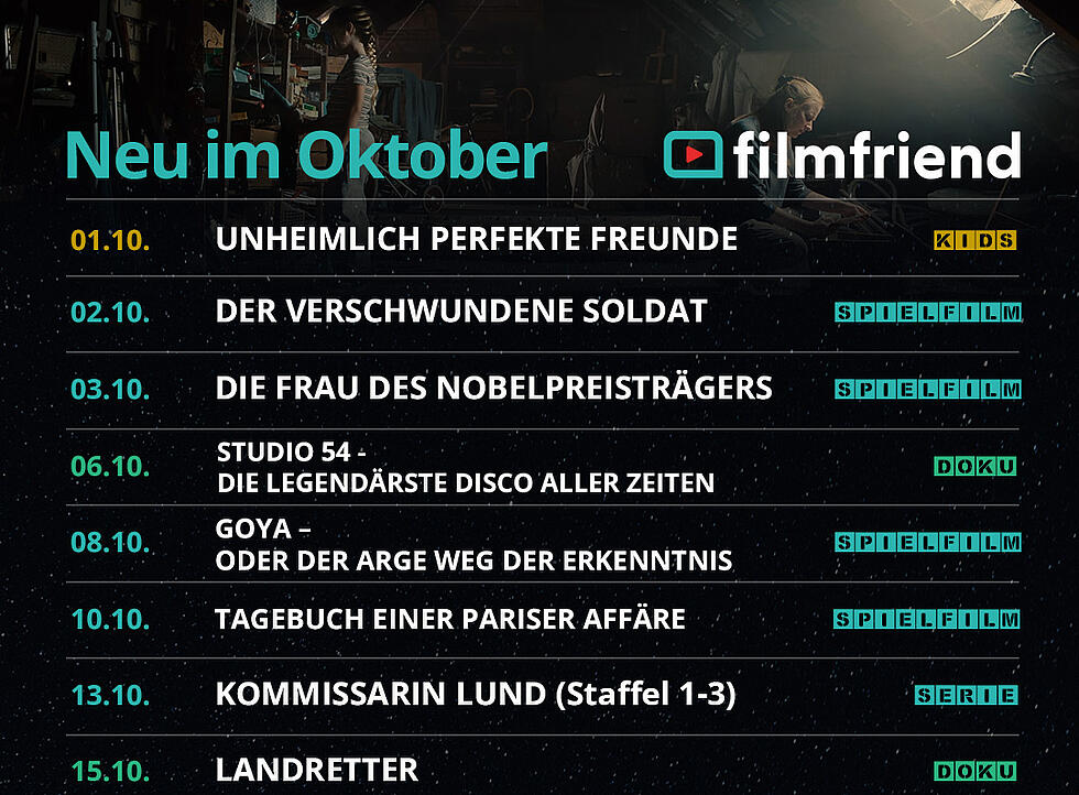 Unterhaltsame und preisgekrönte Filme aus aller Welt, Bestsellerverfilmungen, vielfältige Kinderfilme- und Serien, inspirierende Dokumentarfilme und vieles mehr bietet unser Streamingdienst filmfriend.